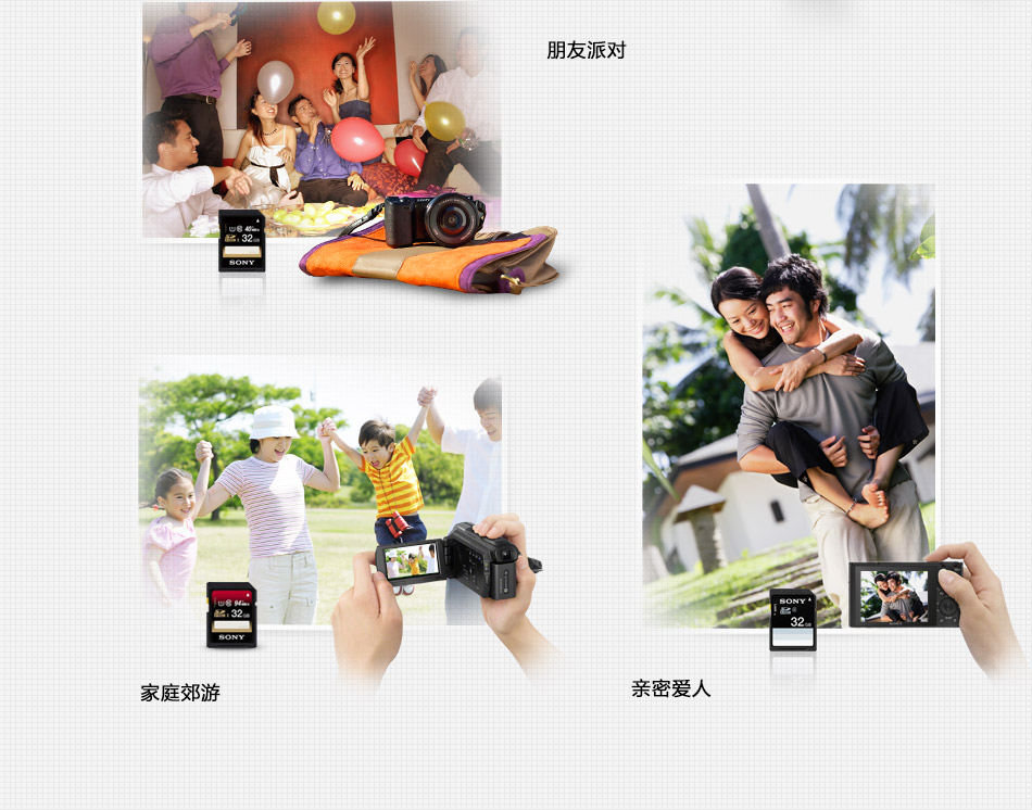 在亲友派对上,让人感动的温馨和让人捧腹的幽默总是不期而遇,不可错过的珍贵一刻就用索尼SD储存卡全部为您记录,将创意毫无保留的释放,将记忆悉数珍藏。