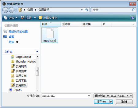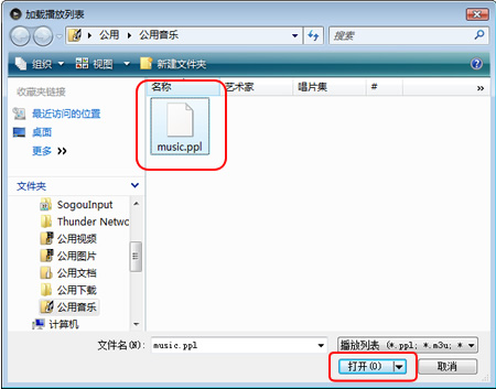 2. 选择您想加载的播放列表(扩展名 .ppl、.m3u),点击[打开]。