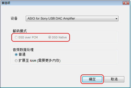 可选择DSD文件的播放方式。
