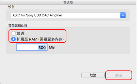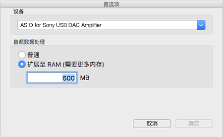 扩展至RAM模式:先将音乐文件读取到内存中再播放。无需在播放时进行读取,因此可降低Mac的CPU负载,使播放状态稳定。希望提升播放音质时建议选择该模式。