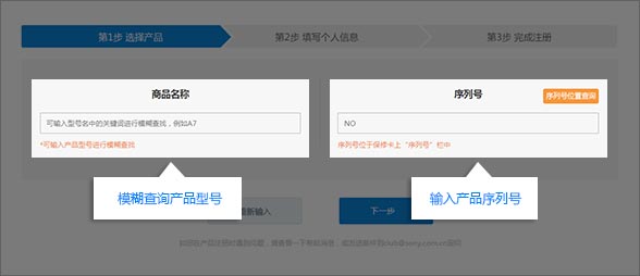 如果您还不是索尼会员,您可以根据系统提示,输入您的信息并确认后提交。(企业客户会员不能进行产品注册,请另行注册成为My Sony会员。)