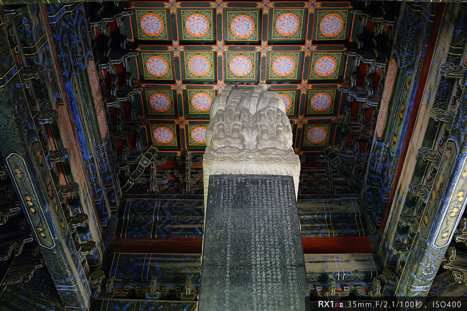 轻便的特点,翻转屏幕有着较强的抗反射性能,拍摄仰角的照片异常方便。碑亭里面的光比较大,但是RX1R II却可以清晰地记录下较多的暗部细节。