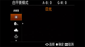 在白平衡模式中选择"日光"。