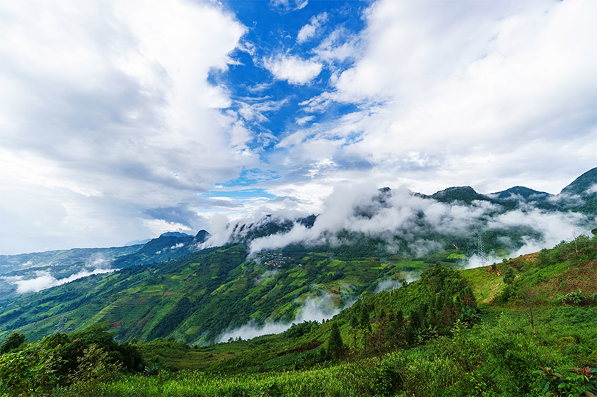 + E16-70mm F4 ZA OSS 16mm F8.0 1/500s ISO100而在相同的位置换上超广角镜头后,整个山谷被完全纳入画面,大面积展开的云层给整个画面增加了磅礴的气势,山中云雾下的小村庄若隐若现,充满了神秘的气息。