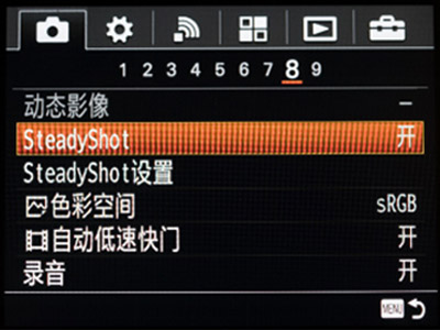 5轴防抖功能开关如图所示,当搭配索尼FE原生卡口镜头时,steadyshot选择开,steadyshot设置中的调整选择自动即可。系统会自动根据镜头进行识别。
