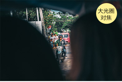 自然的画框是一种构图的技巧,可以将观看者的视线引导到画面的主体上去。要实现这个构图技巧,在拍摄照片的时候要利用大光圈并对焦在远处的拍摄主体上,同时将近处的拍摄物体虚化,这样一来虚化的前景就变成了一个柔和的画框。上面两张例图就是通过这种拍摄技巧完成的。坐在交通工具里拍摄车外的路人,将车里的其他乘客以及车窗或车门等前景虚化作为画框,以达到凸出拍摄主体的目的。这个技巧并不复杂,但需要你在外拍摄的时候细心观察场景,寻找合适的前景来作为画框,同时等待有趣的拍摄主体出现。