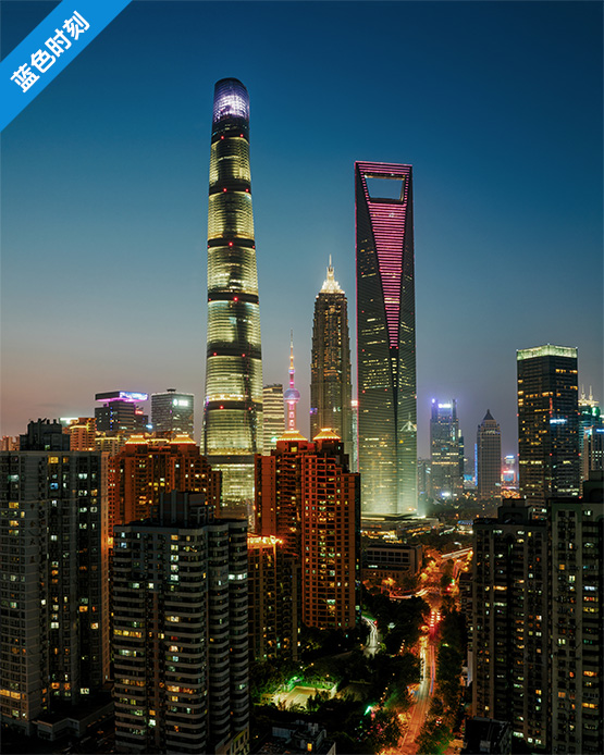 另外由于这样的天空只有大片的蓝色,因此构图上需要合理安排,让天空作为背景来承托拍摄主体。像上图中天空在画面中的占比不多,但却能很好的烘托出城市的夜景。颜色上冷调的蓝色也与暖光的城市很好的形成了冷暖对比。